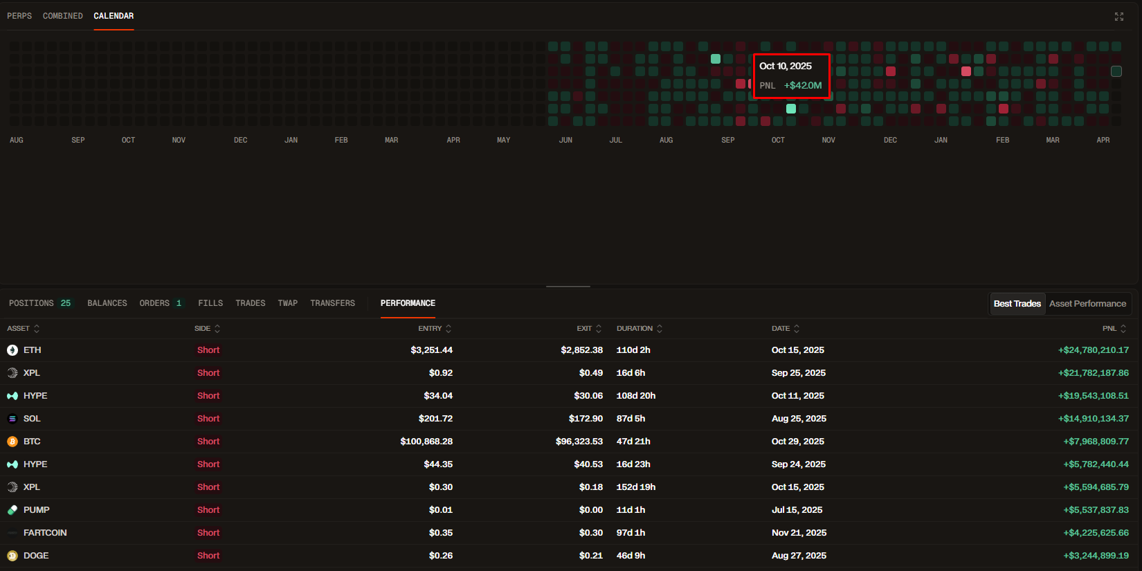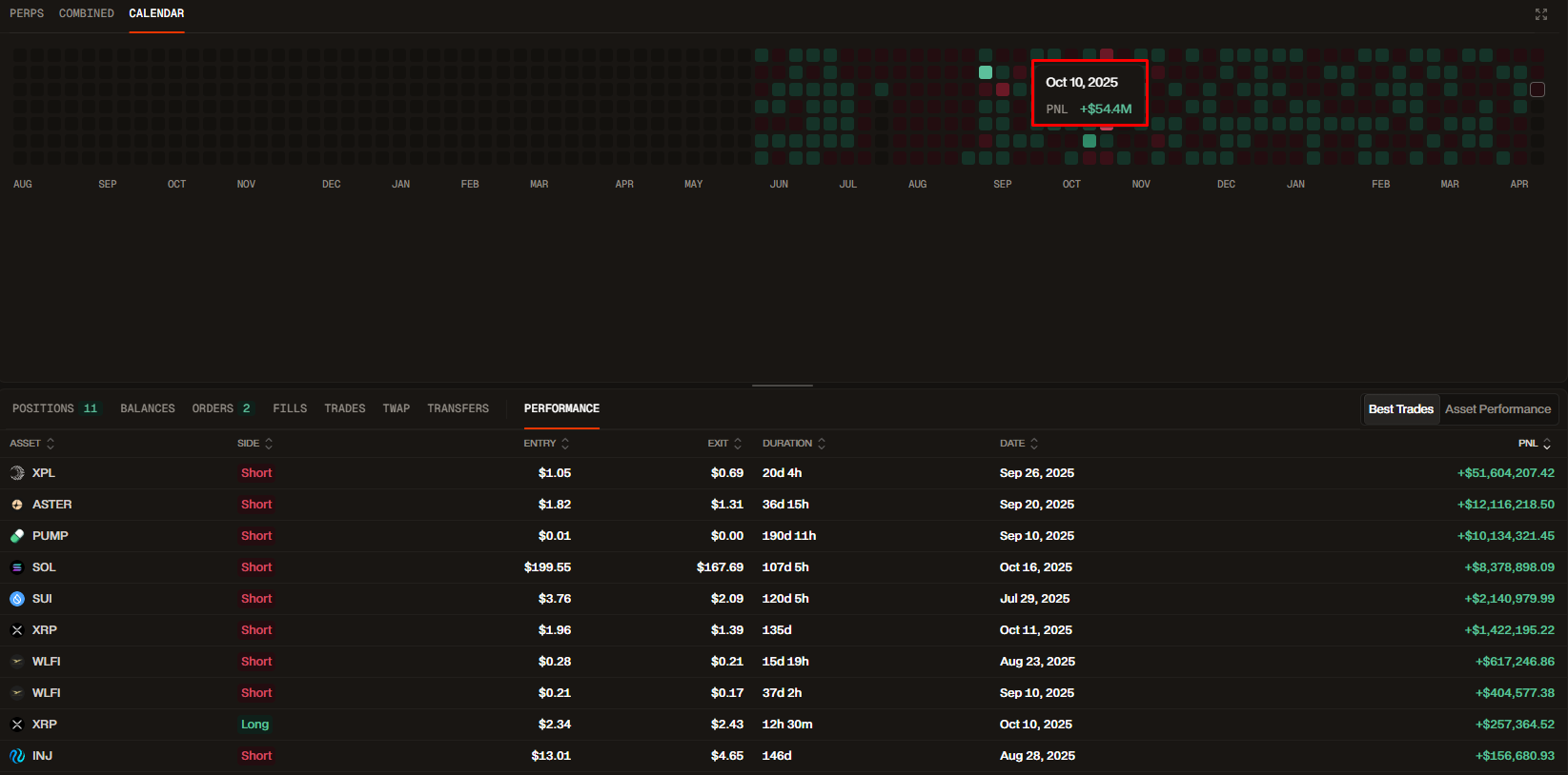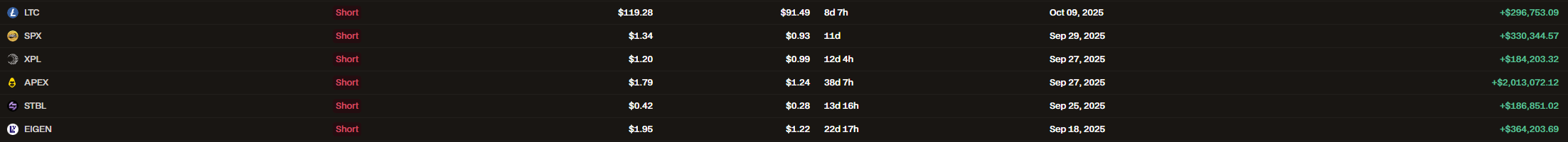 Основной профит с пролива, это шорты по $XPL, $ASTER.