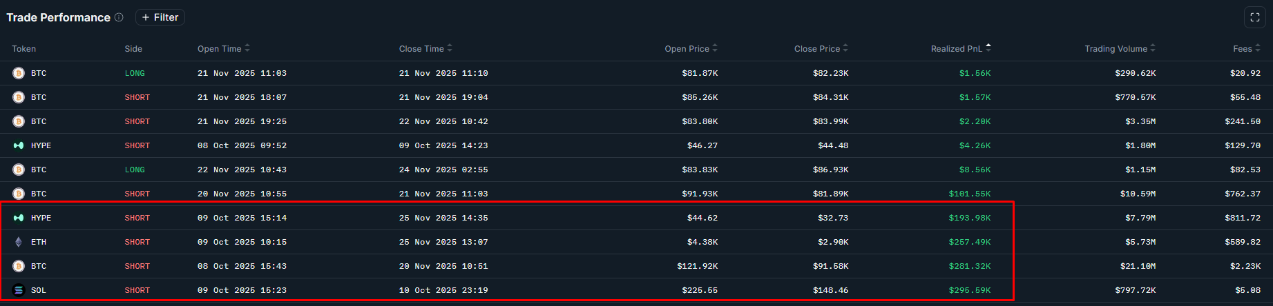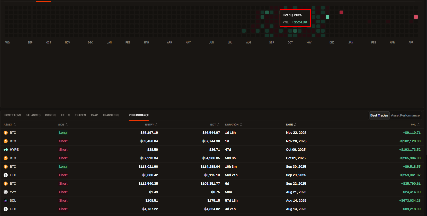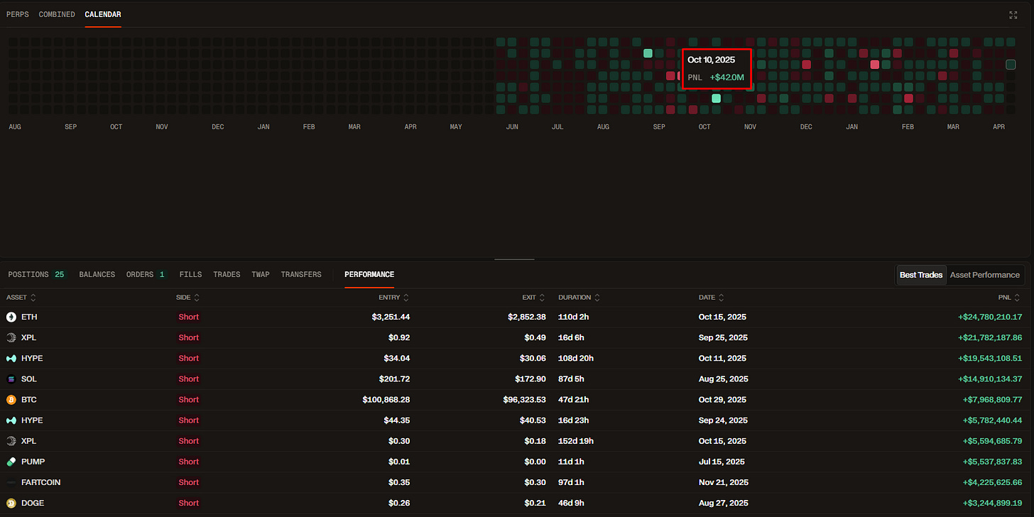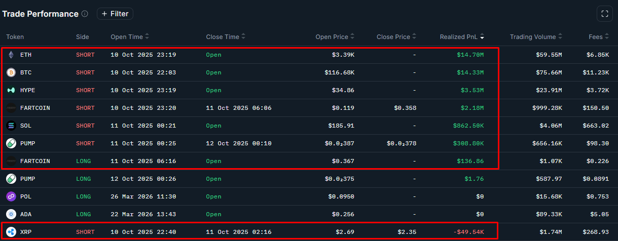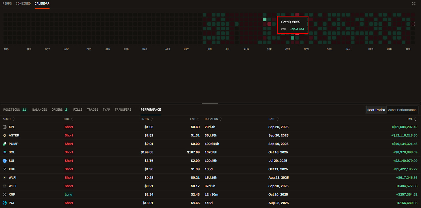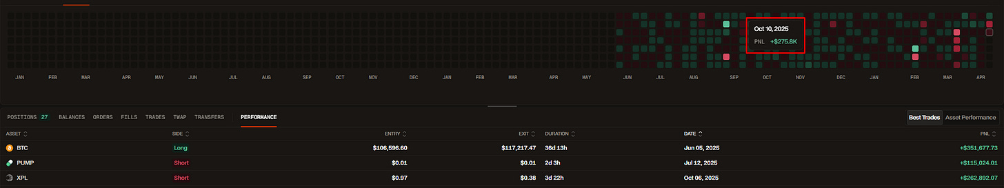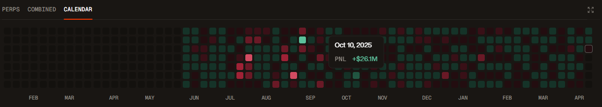 Чистый убыток за 10-11 октября -1.2М$ c алгоритмических сделок по многим инструментам, в большей части фундаменталов $ETH, $SOL, $HYPE, а также мемтокенов.