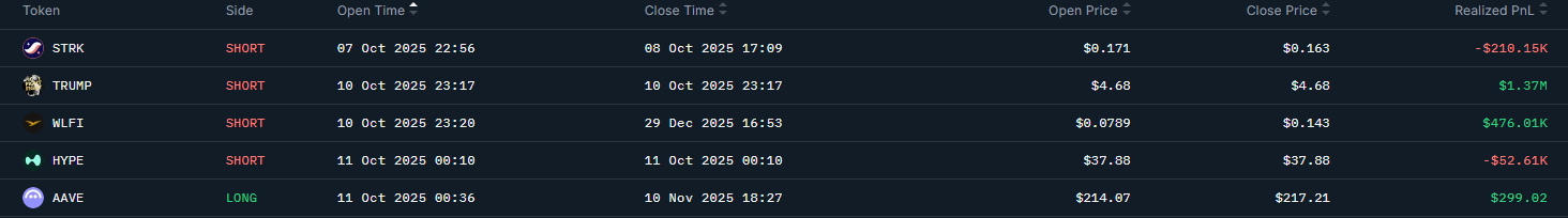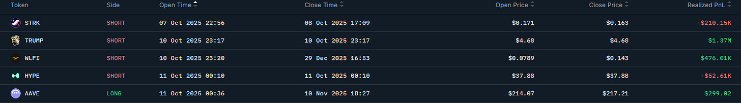 Позиция по $TRUMP была сразу закрыто +1.4М$, а $WLFI решили оставить на потянуть.