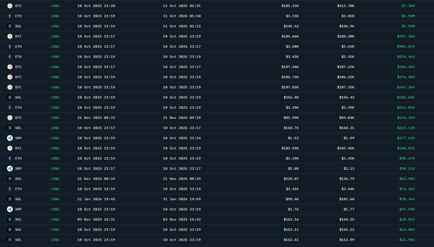 $ETH лонги, $BTC лонги, $SOL лонги, $XRP лонги.