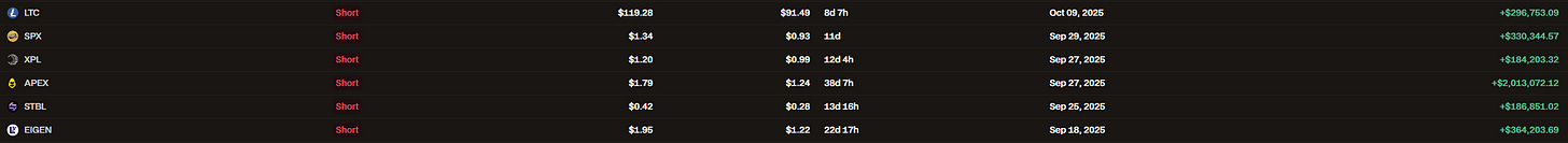 SHORT: $SOL, $ETH, $DOGE, $XPL, $MNT.