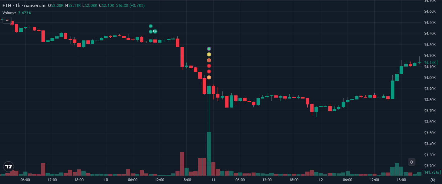 Penision активно лонговали эфир $4340 и на самом проливе 10.10 они выходили из позиций по самым лоям в -20% - $3380 при этом потеряв профитную статистику аккаунта и получив убыток в более 5М$.