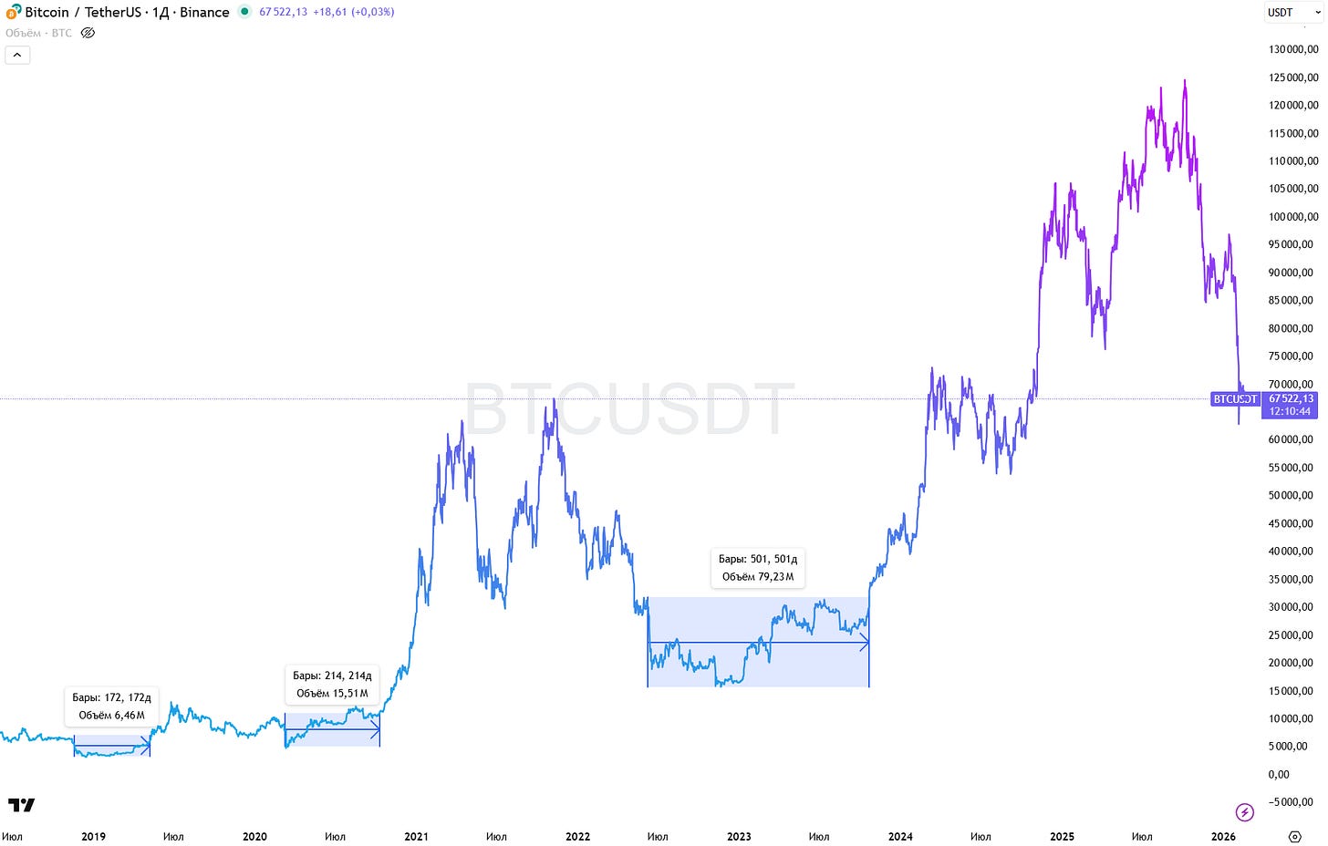 Исходя из прошедших циклов, медвежка никогда не разворачивалась слишком быстро, на это в среднем уходило 150-200 дней аккумуляции.