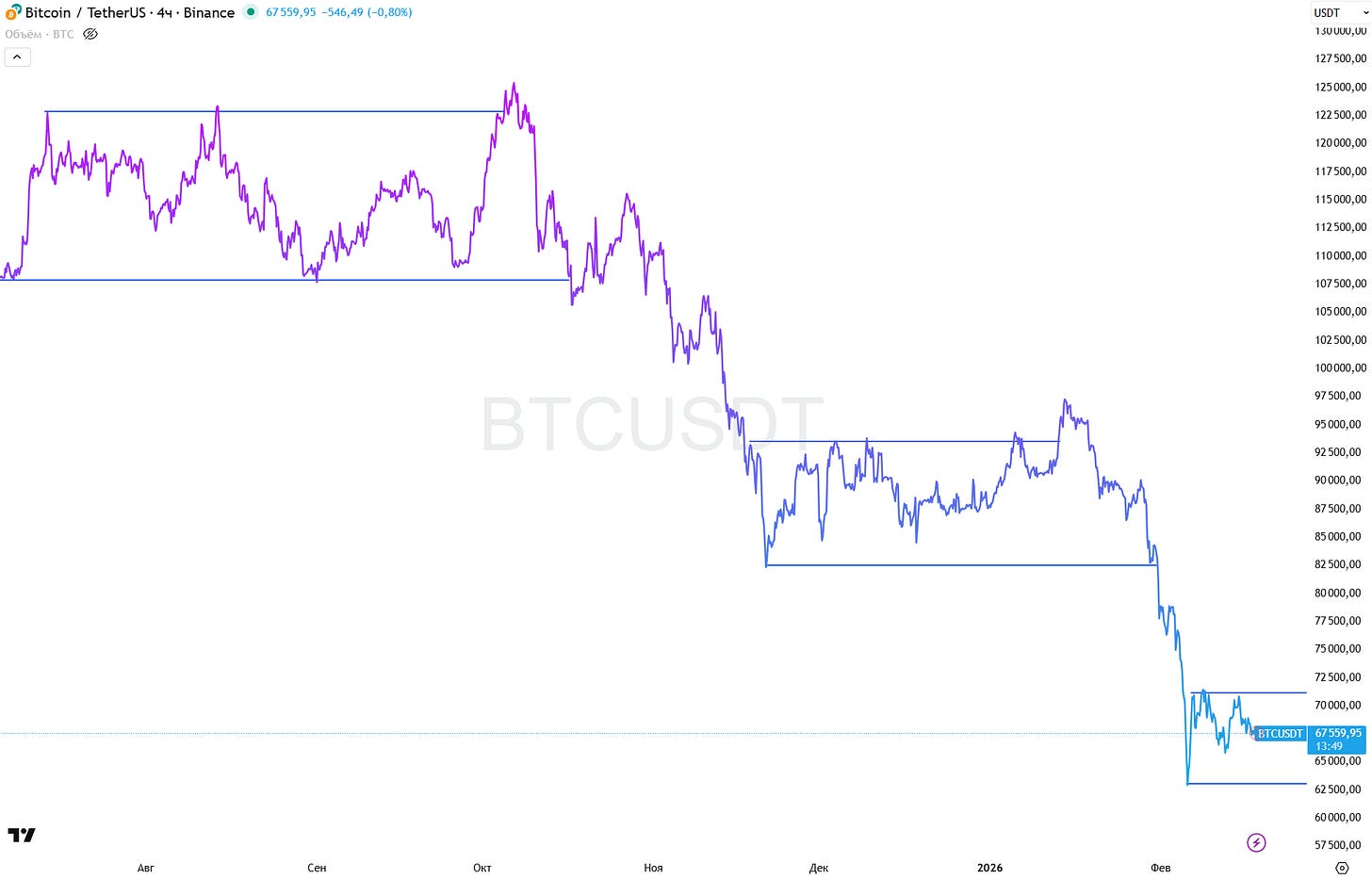 Структурально, даже на младших тф, мы все равно находимся в даунтренде, и сохраняется тот же паттерн/фрактал, который был ранее с аккумуляцией по 95К, после которого цену сильно опрокинули. По этому, нам очень важно сейчас понимать всю внутрянку, которая происходит под чартом.