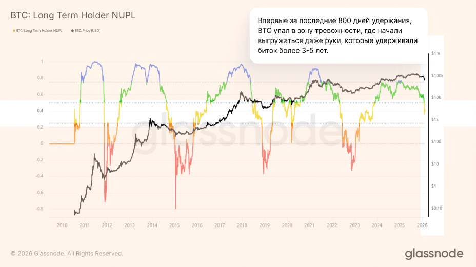 За долгое время, спустя бычьего цикла, биток упал в тревожную зону для долгосрочных холдеров, где они решили фиксировать свою прибыль, какой бы она не была.